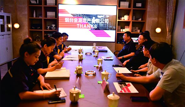 在格林春天營銷中心沙盤展示區(qū),市長史鑫一行首先觀看了生態(tài)濱河城市更新項目位置區(qū)域,在會議室總裁曹雪松介紹了金潮控股集團公司運營情況、金潮地產公司歷年開發(fā)項目,著重講解了金潮地產公司-格林春天項目總規(guī)劃平面及開發(fā)建筑面積、交付項目目前進展及去化率完成情況、生態(tài)濱河城市區(qū)片城市更新項目整體在建規(guī)模及項目。總裁曹雪松表示,金潮地產公司將在市委市政府的領導下,堅持做高品質住宅,著力開拓城市空間、提升城市品質,全力帶動周邊區(qū)域產業(yè)轉型升級,助推現(xiàn)代服務、高端商務、休閑康養(yǎng)等產業(yè)做大做強,并對招遠市的地產開發(fā)做個示范帶頭作用。